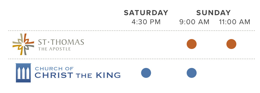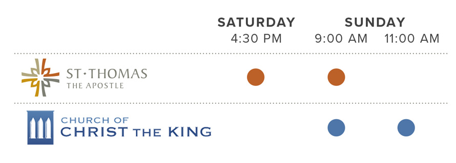 St. Thomas the Apostle and Church of Christ the King are clustered parishes.